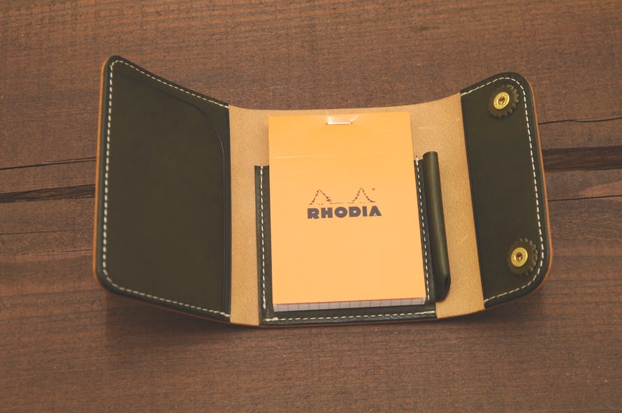 05日 1月 2017 Rhodia No.11 Case(Pattern Order) Order Work ☆KUBIKI RHODIA NO.11 CASE LEATHER : Natural / Olive(Italian Leather) stitch : White PARTS : BRASS tagPlaceholderカテゴリ: leather, products