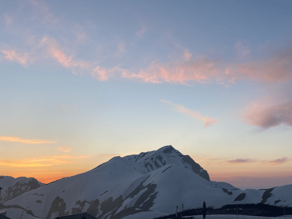 夕焼けも素晴らしく紅い山々に包まれる