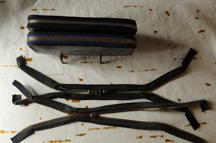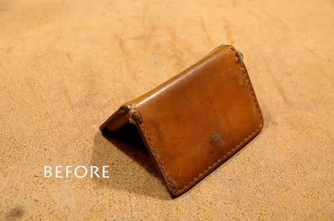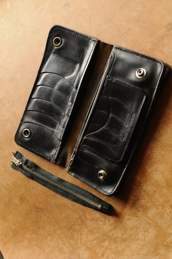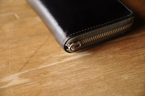 10年ほど使われているウォレットの糸の縫い直しとオイルの注入、ファスナー交換です。